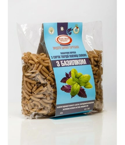 Состав - мука из твердых сортов пшеницы (Дурум), порошок базилика.