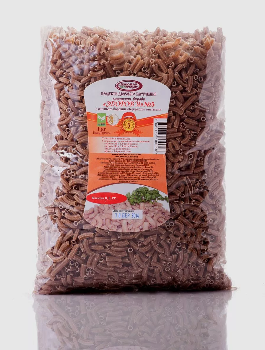Макароны «ЗДОРОВЬЕ» №5 из ржаной муки с отрубями (1 кг)